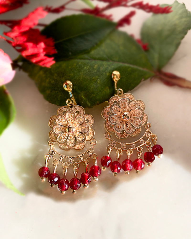Boucles d'oreilles dorées à l'or fin et pierres fines : agate