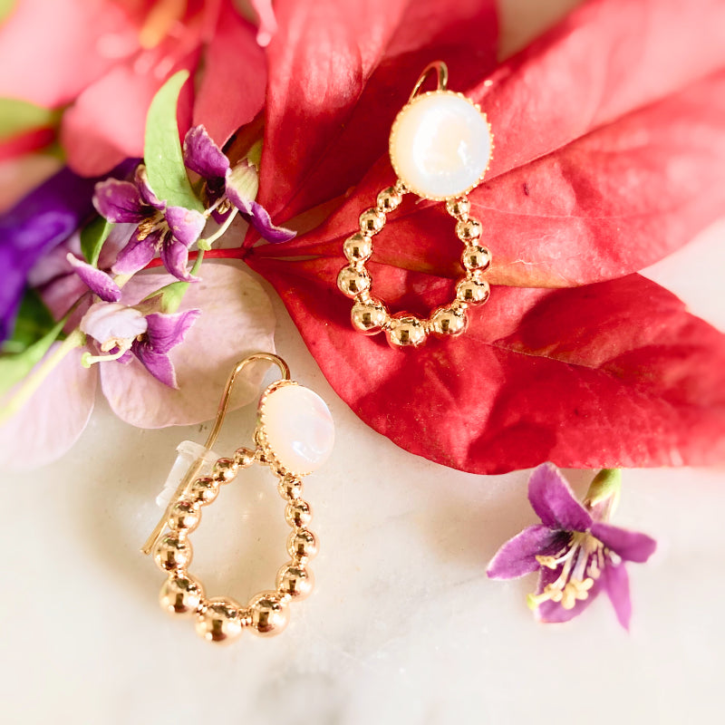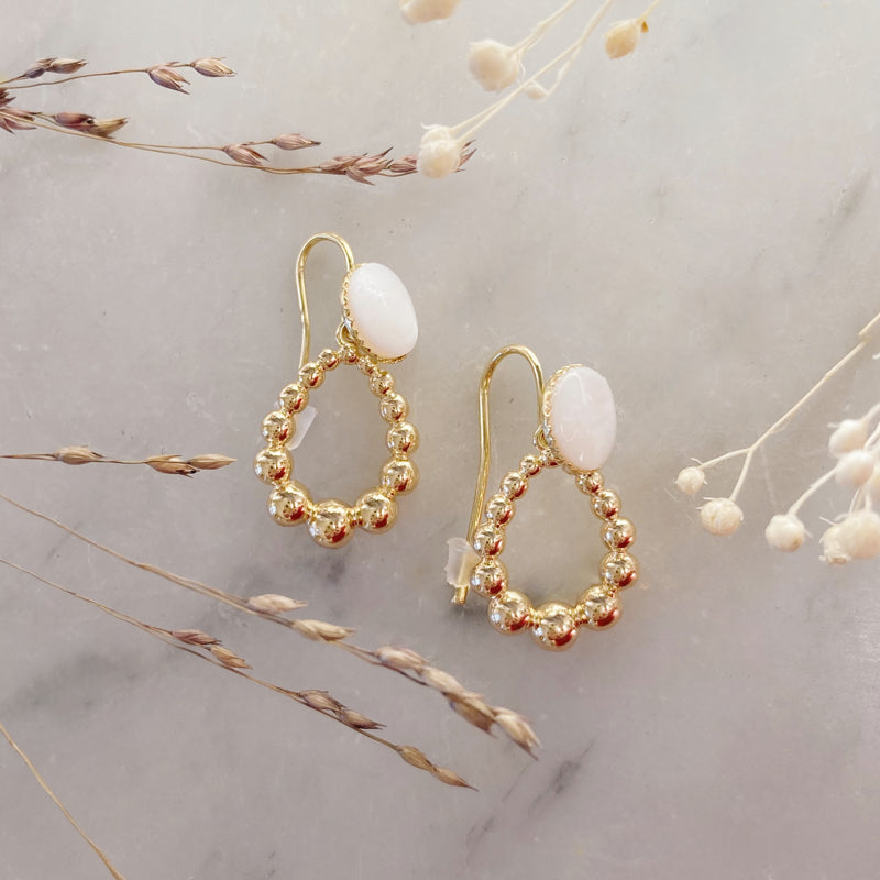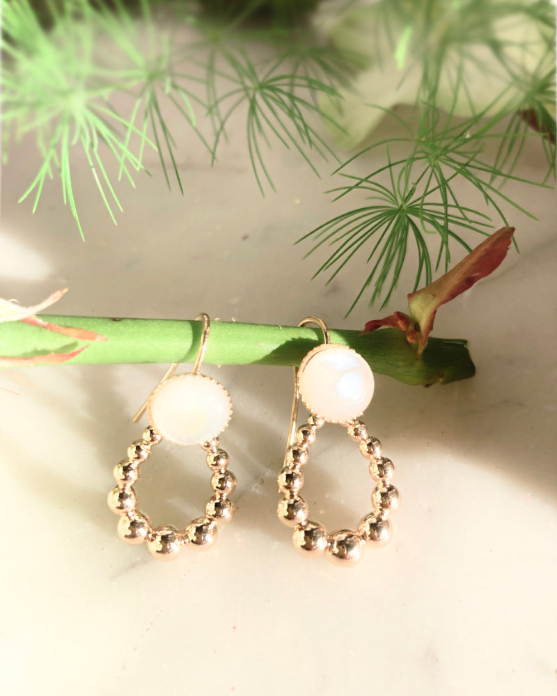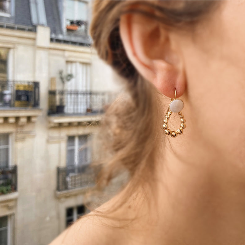 Boucles d'oreilles dorées à l'or fin, cabochons de nacre